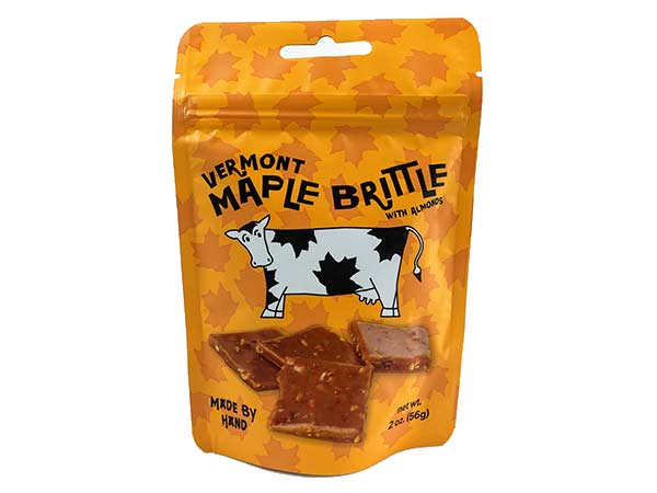 Think English toffee with crushed almonds made with pure Vermont maple syrup and creamy Vermont butter. Snapping-crisp, buttery and not overly sweet, our all-natural confection is handmade in small batches.
